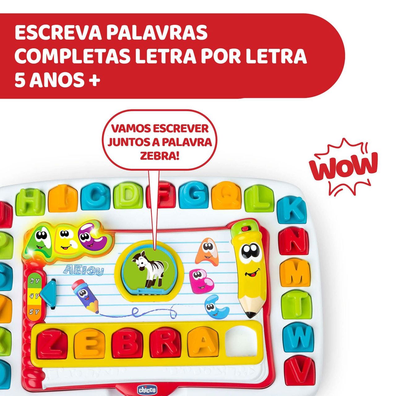 5 ANOS MODO: a criança aprende a ler e a escrever palavras inteiras; ao ouvir as sugestões do lápis-guia, irá escrever uma palavra posicionando-a na secretária letra a letra.