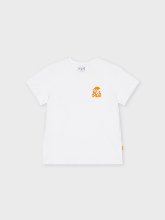 • T-shirt branca com logótipo EPIC DINO laranja no peito